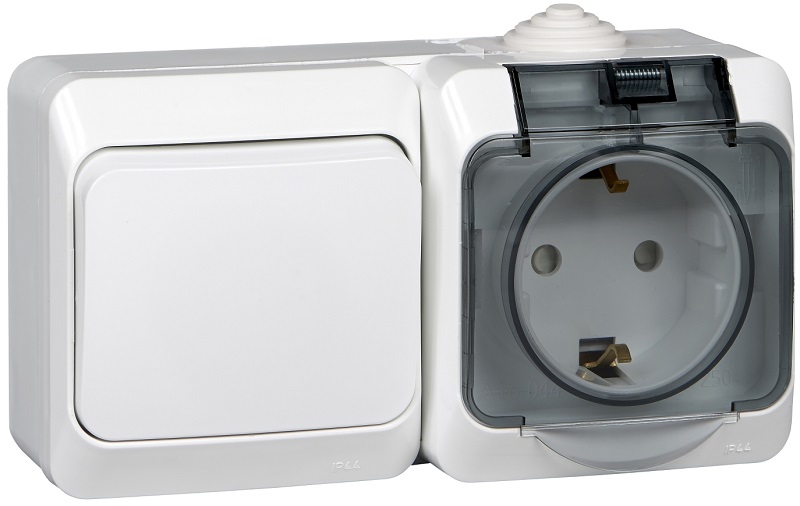 Блок накладной Systeme Electric Этюд розетка 1-м.+выключатель 1-кл. IP44 белый