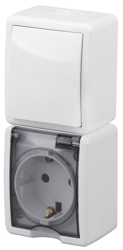 Блок накладной вертикальный Эра Эксперт розетка 1-м.+выключатель 1-кл. IP54 белый