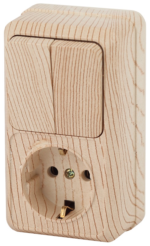 Блок накладной вертикальный Эра Intro Quadro розетка 1-м.+выключатель 2-кл. сосна