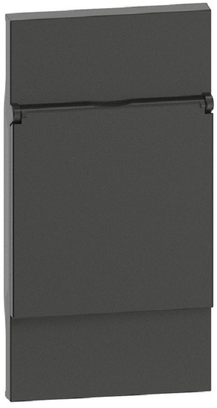 Коллекция серии Living Now от Bticino. Лицевая панель для механизма розетки электрической 2К+З немецкого стандарта с крышкой, черного цвета - 2 модуля.