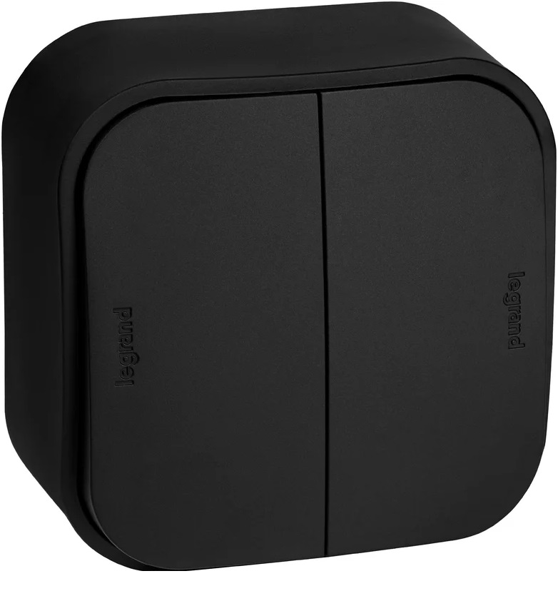ереключатель двухклавишный открытого монтажа серии Quteo. Устанавливается в жилых и общественных помещениях для управления приборами освещения, вентиляции и т.д. Предназначен для управления двумя нагрузками с одного или двух мест. Подходит как для скрытой, так и для открытой проводки. Глубокий матовый чёрный цвет. Стойкий к износу и повреждениям, тактильно приятный. Материал клавиши АБС пластик - ударопрочный. Механизм изготовлен из высококачественного поликарбоната - обладает высокой электробезопасностью, не поддерживает горение. Все токоведущие части выключателя имеют защиту от случайного прикосновения. Винтовые зажимы для присоединения проводов оснащены невыпадающими винтами. Корпус выполнен из пластичного полипропилена, стойкого к внешним воздействиям, экологичного и безопасного. Крепление корпуса не требует дополнительных инструментов для монтажа/демонтажа. Простое выравнивание изделий при установке в ряд. Идеальная совместимость с кабельными мини-каналами Metra.
