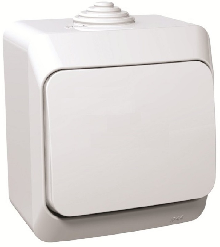 Переключатель накладной Systeme Electric Этюд 1-кл. проходной IP44 белый