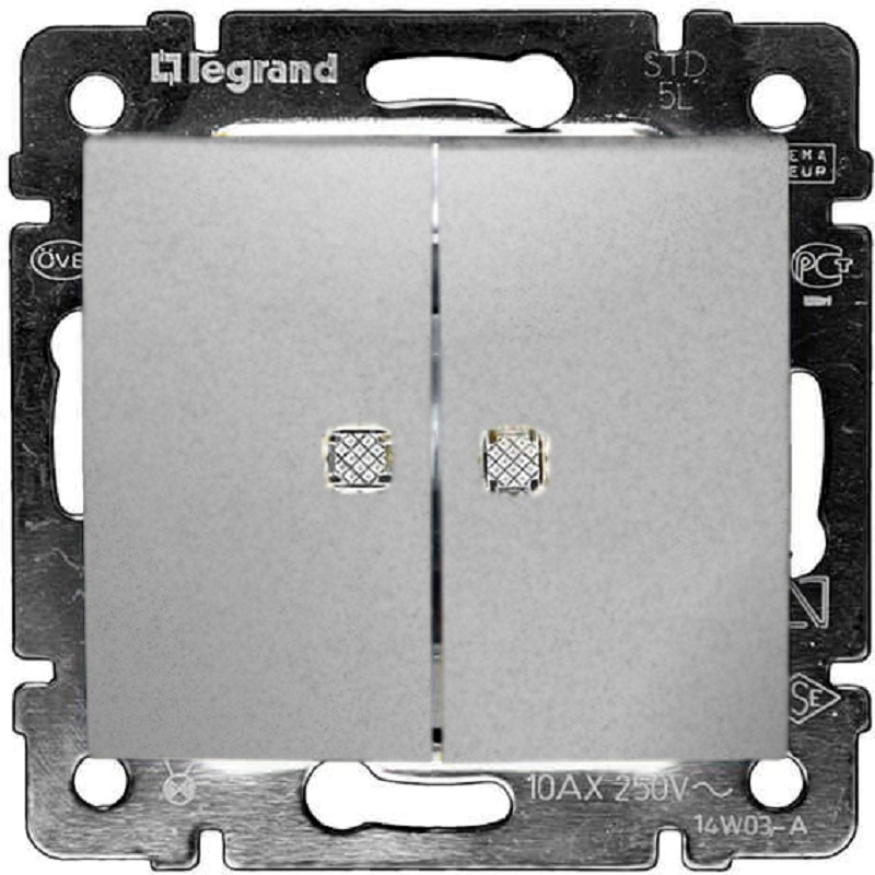 Переключатель с подсветкой без рамки Legrand Valena 2-кл. проходной алюминий картинка