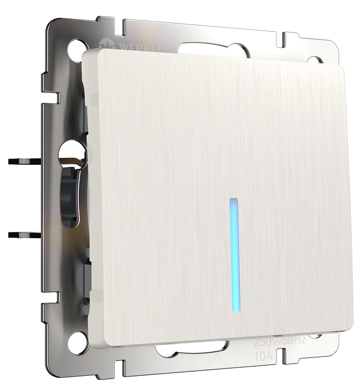 Переключатель с подсветкой без рамки Werkel 1-кл. проходной перламутровый рифленый