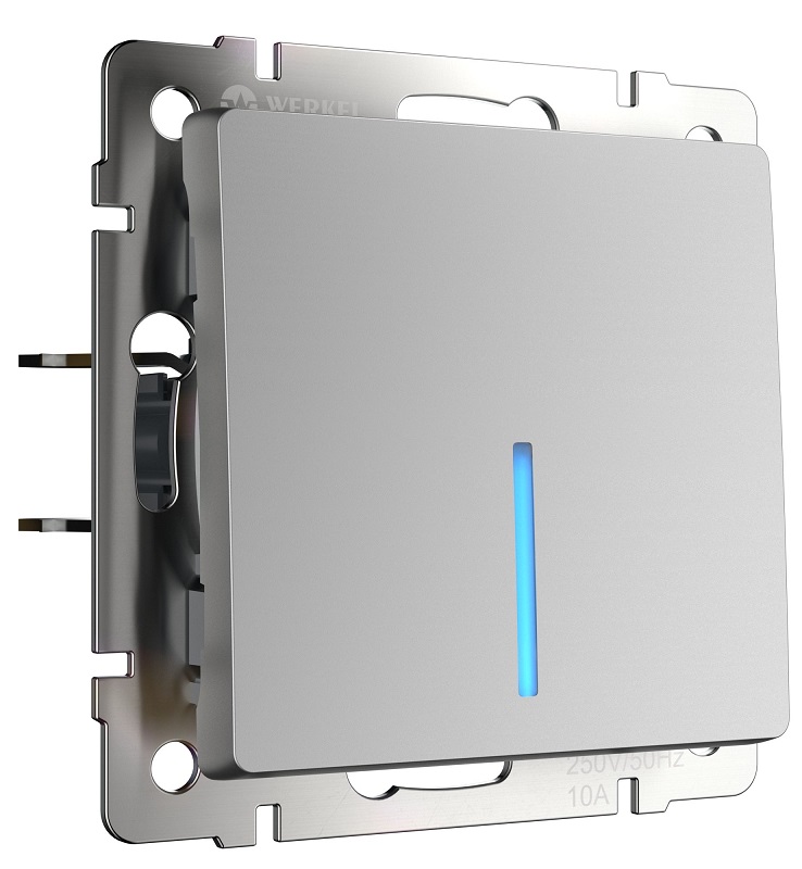 Переключатель с подсветкой без рамки Werkel 1-кл. проходной серебряный глянцевый