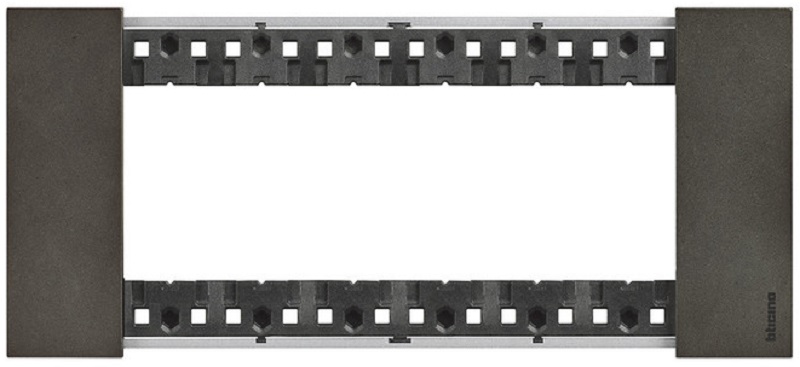 Декоративная рамка серии Living Now от компании Bticino немецкого стандарта цвета космос, изготовлена из цинк-алюминиевых сплава с медью - ZAMAK. Отделка декоративных рамок из zamak частично выполнена вручную. По этой причине наличие индивидуальных отличий между рамками является их уникальной особенностью. Занимает 1 пост и 6 модулей, поэтому используется в комбинации с суппортом K4706. Идеально сочетается с лицевыми панелями и клавишами механизмов чёрного цвета. Страна производства всех изделий Bticino серии Living Now и их комплектующих Италия.