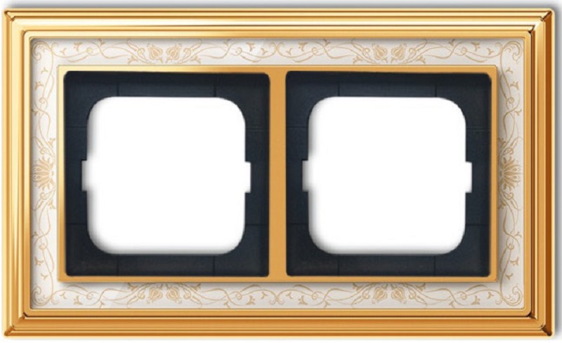 Рамка универсальная ABB Династия 2-м. полированная латунь/белая роспись