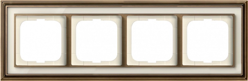 Рамка универсальная ABB Династия 4-м. античная латунь/стекло белое