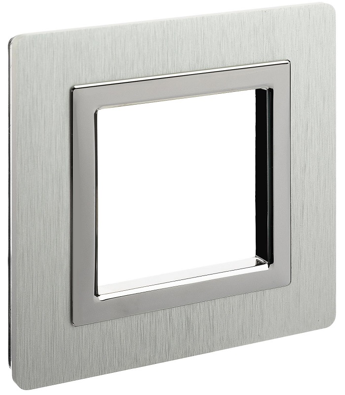 Светлая рамка из алюминия для настенного монтажа. Назначение: декоративное оформление серии "Avanti"; монтаж в стену на каркас ЭУИ "Avanti" (код 4400802). Дизайн разработан B. Dall’Ecco. Материал – алюминий. Фактура – браш. Кол-во модулей: 2