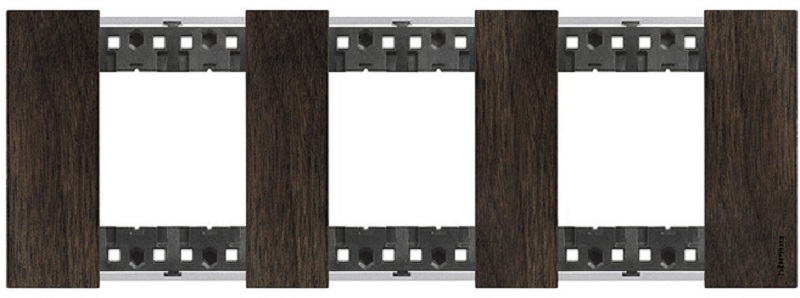 Декоративная рамка серии Living Now от компании Bticino итальянского стандарта цвета орех, лицевая часть из натурального массива ореха. Занимает 3 поста и 2+2+2 модуля, поэтому используется в комбинации с тремя суппортами K4702. Идеально сочетается с лицевыми панелями и клавишами механизмов чёрного цвета. Страна производства всех изделий Bticino серии Living Now и их комплектующих Италия.