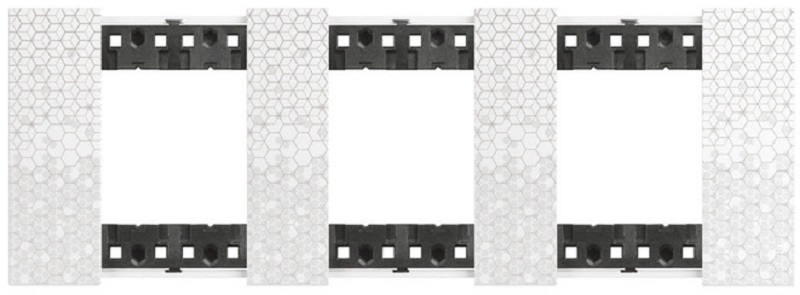 Декоративная рамка серии Living Now от компании Bticino итальянского стандарта цвета пиксель, выполнена из высококачественного термопласта с эффектом пиксель. Занимает 3 поста и 2+2+2 модуля, поэтому используется в комбинации с тремя суппортами K4702. Идеально сочетается с лицевыми панелями и клавишами механизмов белого цвета. Страна производства всех изделий Bticino серии Living Now и их комплектующих Италия.