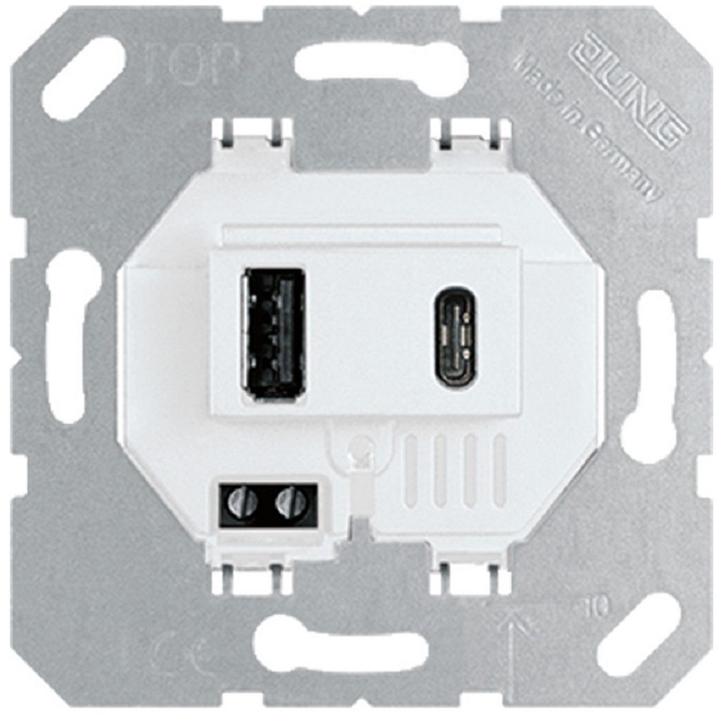 Розетка 2хUSB тип A+C без накладки без рамки Jung 2-м.