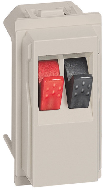 Коллекция серии Living Now от Bticino. Акустическая розетка песочного цвета с 1-канальным разъёмом для подключения аудиоколонок, акустических активных или пассивных аудиосистем домашнего кинотеатра - 1 модуль.