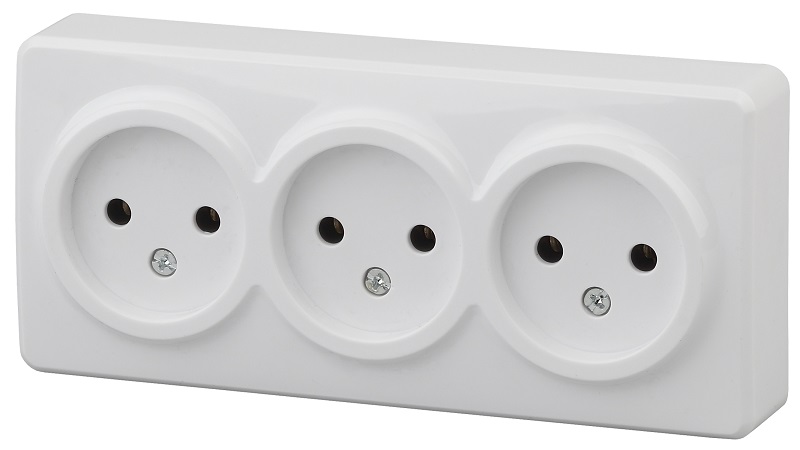 Розетка без заземления накладная Эра Эксперт 3-м. белый картинка