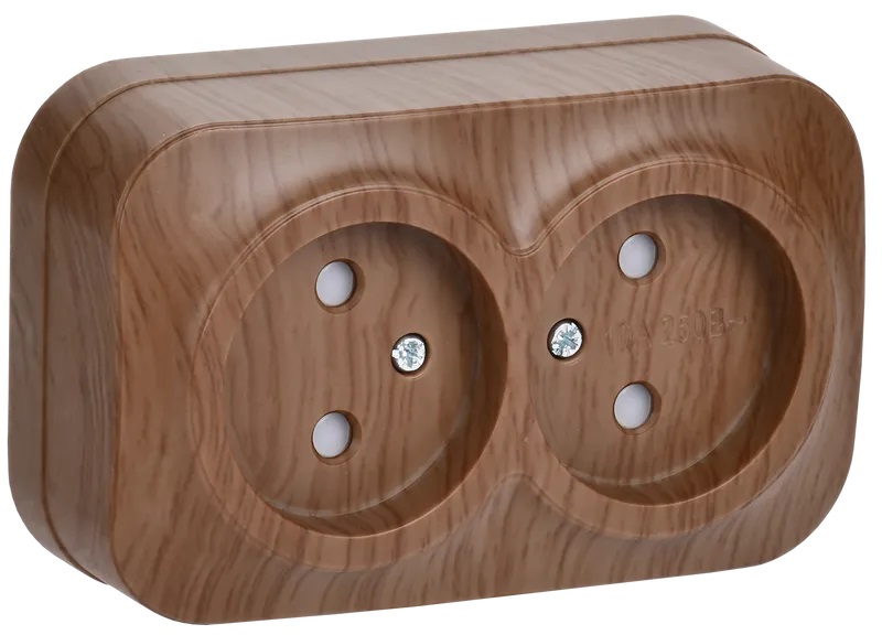 Розетка без заземления накладная IEK Glory РСш22-2-ХД 2-м. шторки дуб