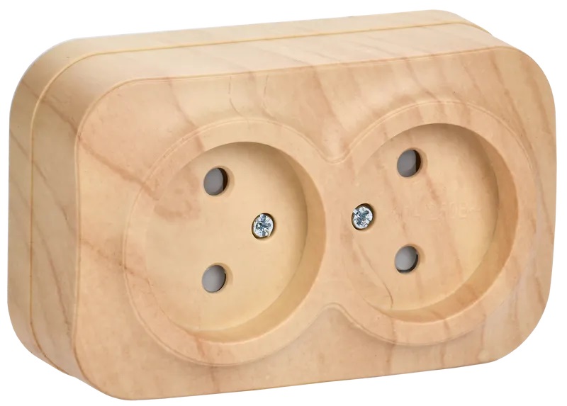 Розетка без заземления накладная IEK Glory РСш22-2-ХС 2-м. шторки сосна