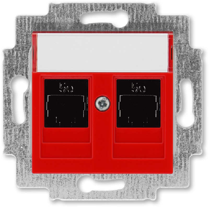 Розетка компьютерная без рамки ABB EPJ Levit 2-м. RJ45+RJ45 5e красный