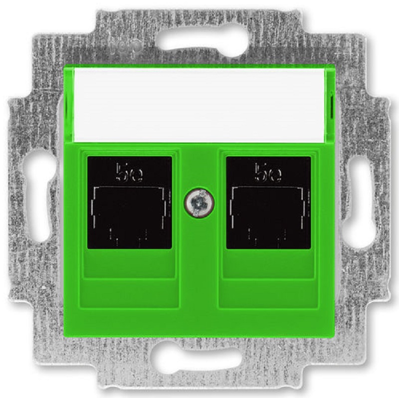 Розетка компьютерная без рамки ABB EPJ Levit 2-м. RJ45+RJ45 5e зеленый