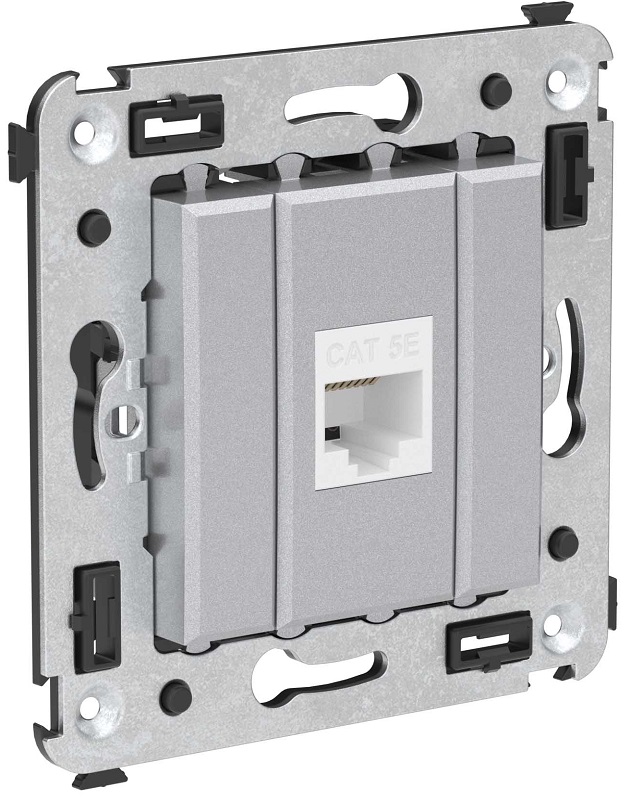 Компьютерная розетка без шторки используется для подключения компьютерной техники и соединения с патч-панелью. Компьютерная розетка предназначена для скрытого монтажа в стену, поставляется в комплекте с суппортом. Розетка RJ-45 категории 5e – это наиболее популярная на сегодняшний день модель. Она позволяет организовать сеть с частотой 125 МГц и скоростью до 1000 Мбит/с. Материал – металл, термопласт.