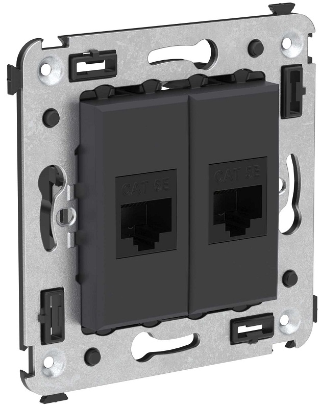 Розетка компьютерная без рамки DKC Avanti 2-м. RJ45+RJ45 5е черный матовый