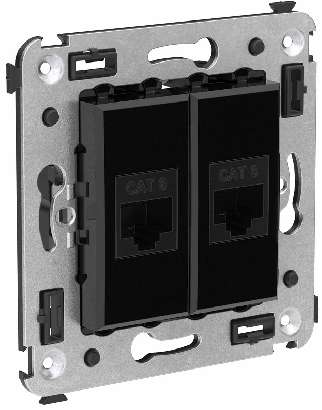 Розетка компьютерная без рамки DKC Avanti 2-м. RJ45+RJ45 6е черный квадрат картинка
