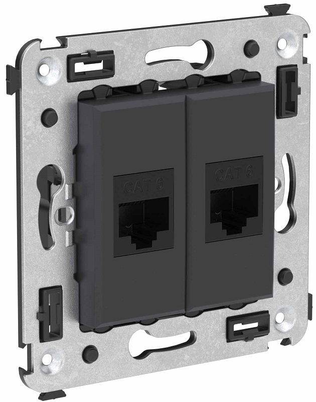 Розетка компьютерная без рамки DKC Avanti 2-м. RJ45+RJ45 6е черный матовый