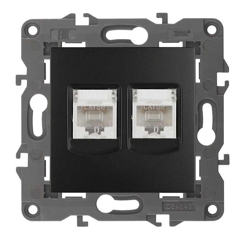 Розетка компьютерная без рамки Эра Elegance 2-м. RJ45+RJ45 5e антрацит