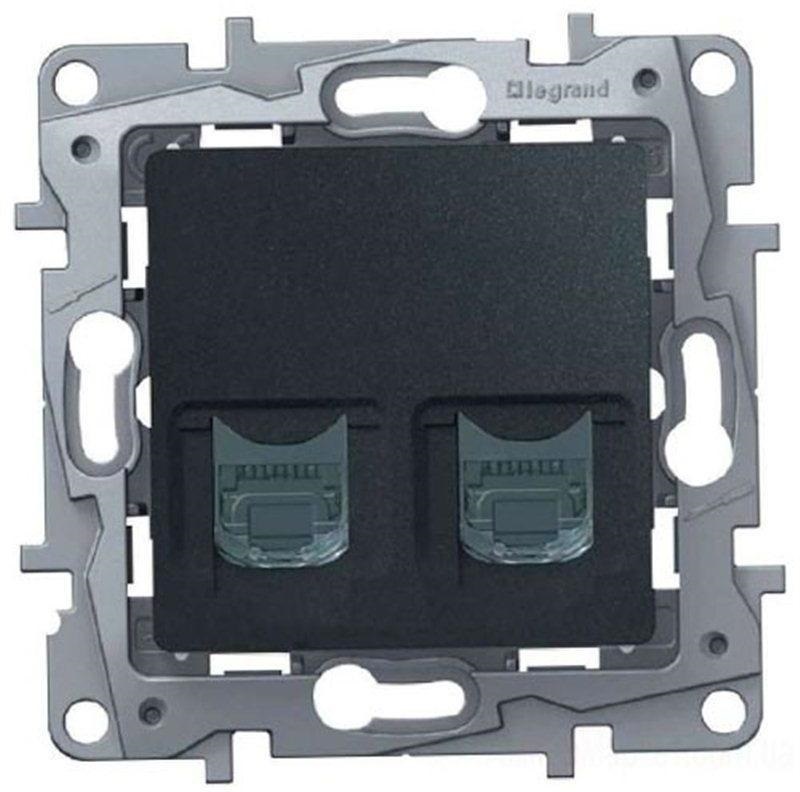Розетка компьютерная без рамки Legrand Etika 2-м. RJ45+RJ45 5e антрацит