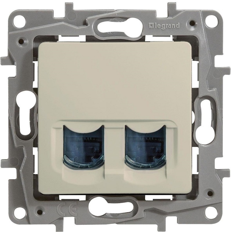 Розетка компьютерная без рамки Legrand Etika 2-м. RJ45+RJ45 6e слоновая кость