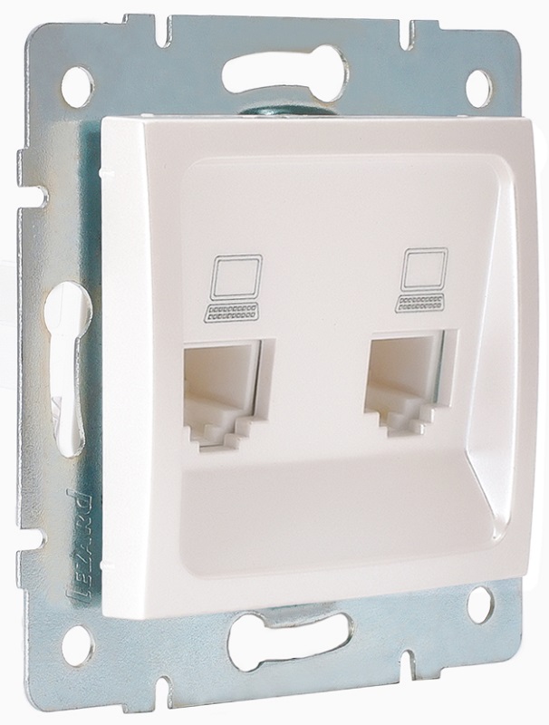 Розетка компьютерная без рамки Lezard Karina 2-м. RJ45 5e жемчужно-белый/перламутр картинка