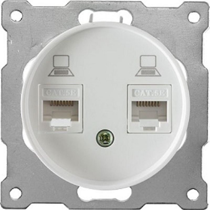 Розетка двух местная с разъёмом RJ-45 для подключения сетевого оборудования или компьютеров к интернету или сети общего доступа. Розетка разработана и предназначена для массового потребления и использования в жилом и коммерческом строительстве.