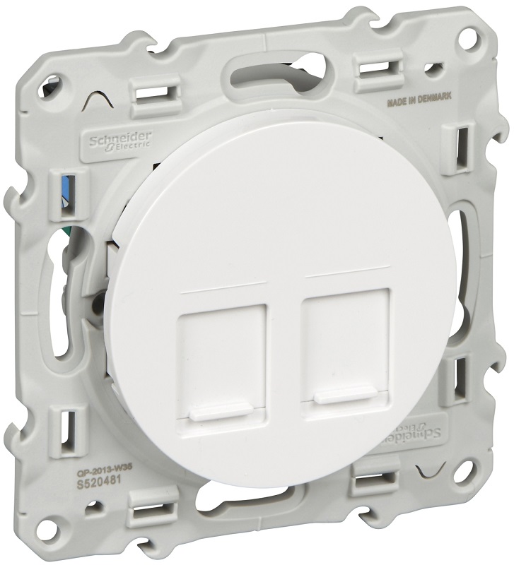 Розетка компьютерная без рамки Schneider Electric Odace 2-м. RJ45+RJ45 5е белый