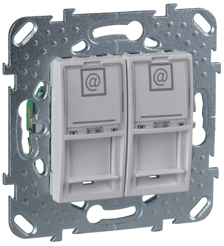 Розетка компьютерная без рамки Schneider Electric Unica 2-м. RJ45+RJ45 5e белый картинка