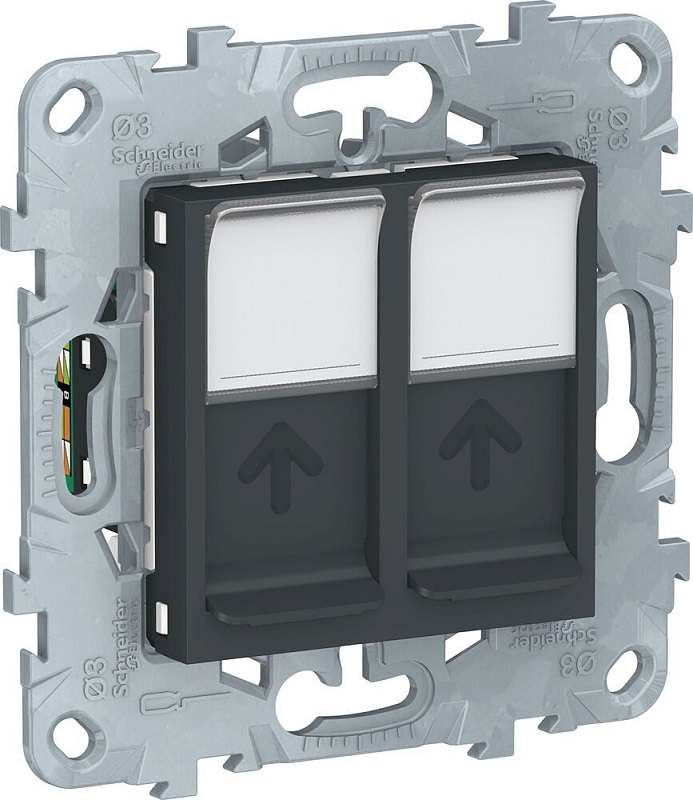 Розетка компьютерная без рамки Schneider Electric Unica New 2-м. RJ45+RJ45 5e антрацит картинка фото 2