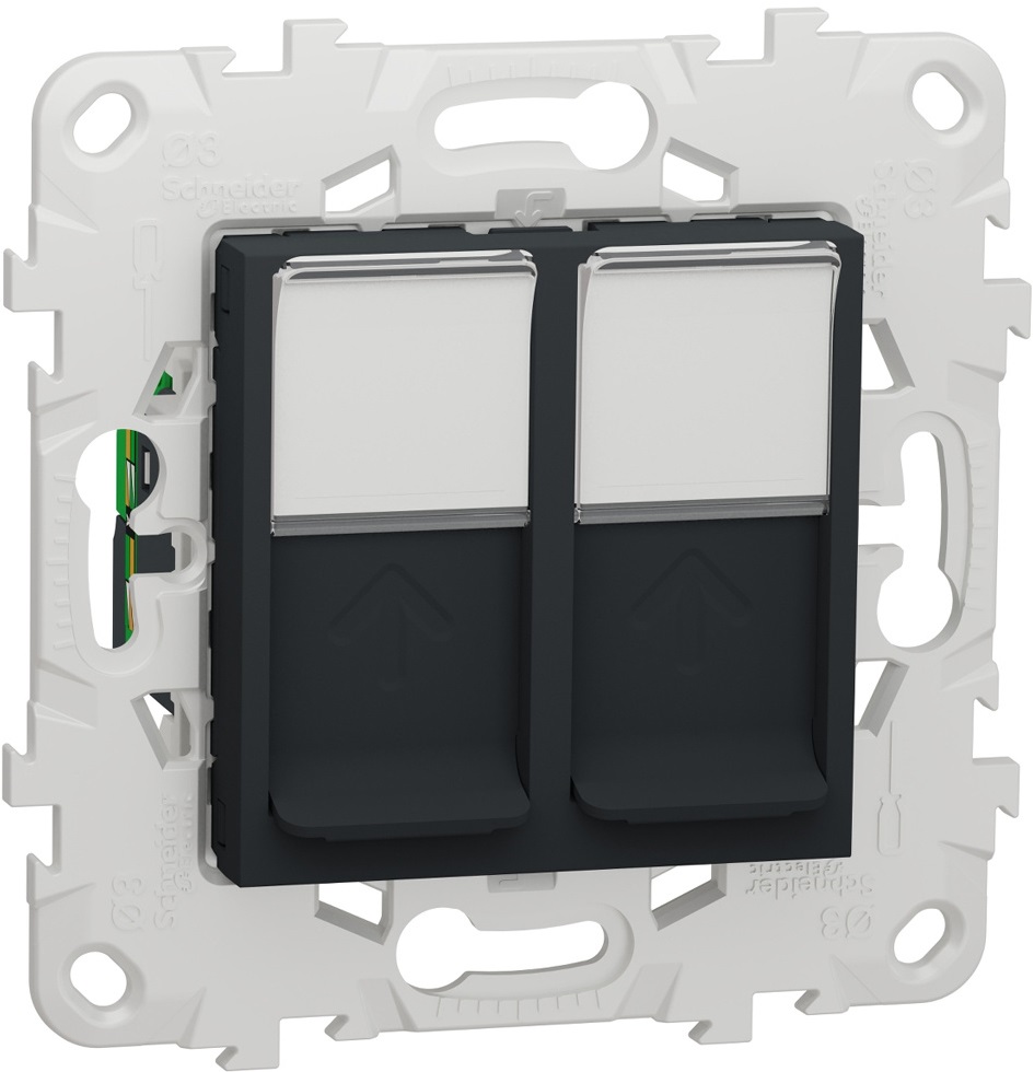 Розетка компьютерная без рамки Schneider Electric Unica New 2-м. RJ45+RJ45 5e антрацит