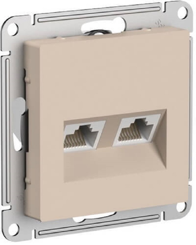 Розетка компьютерная без рамки Systeme Electric AtlasDesign 2-м. RJ45+RJ45 5e песочный