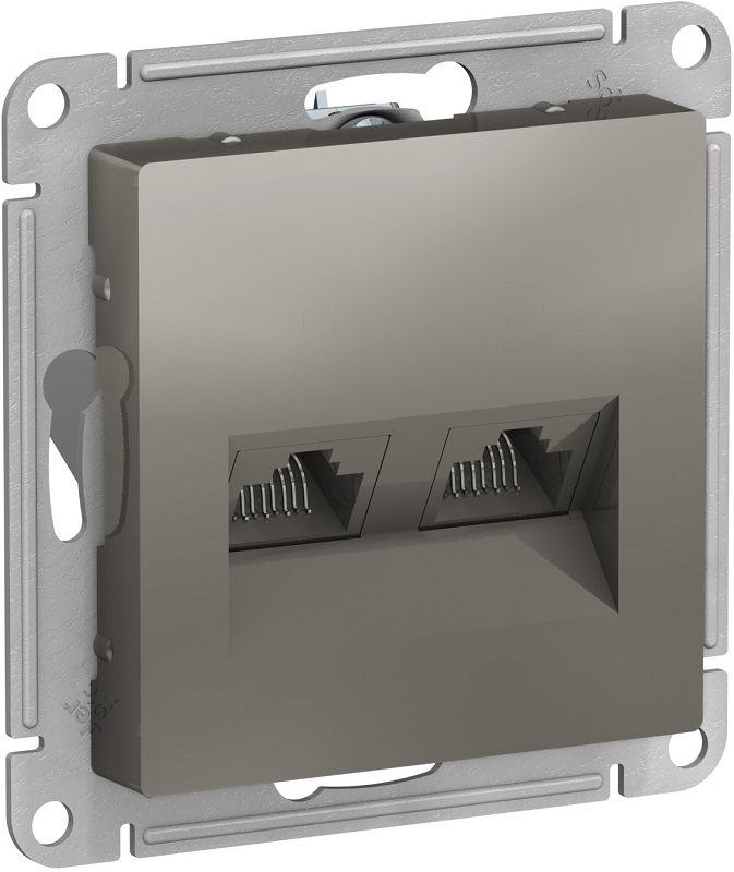 Розетка компьютерная без рамки Systeme Electric AtlasDesign 2-м. RJ45+RJ45 5e сталь