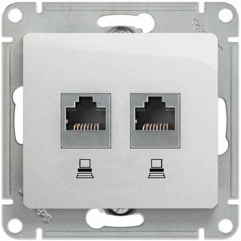 Розетка компьютерная без рамки Systeme Electric Glossa 2-м. RJ45+RJ45 5e алюминий
