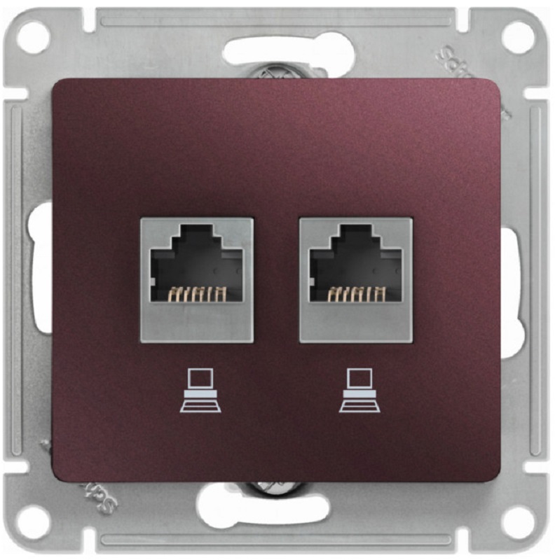 Розетка компьютерная без рамки Systeme Electric Glossa 2-м. RJ45+RJ45 5e баклажан картинка