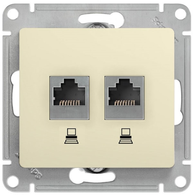 Розетка компьютерная без рамки Systeme Electric Glossa 2-м. RJ45+RJ45 5e бежевый картинка