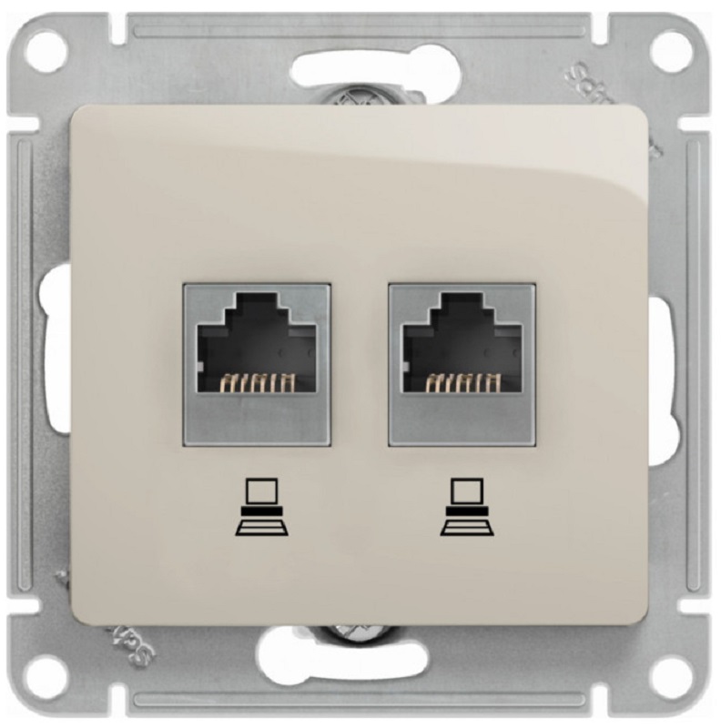Розетка компьютерная без рамки Systeme Electric Glossa 2-м. RJ45+RJ45 5e молочный