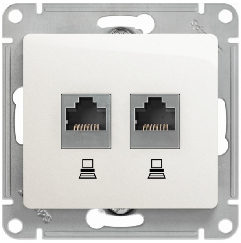 Розетка компьютерная без рамки Systeme Electric Glossa 2-м. RJ45+RJ45 5e перламутр картинка
