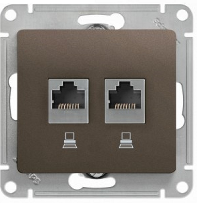 Розетка компьютерная без рамки Systeme Electric Glossa 2-м. RJ45+RJ45 5e шоколад