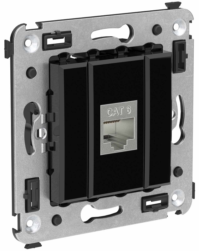Розетка компьютерная экранированная без рамки DKC Avanti 1-м. RJ45 6е черный квадрат картинка