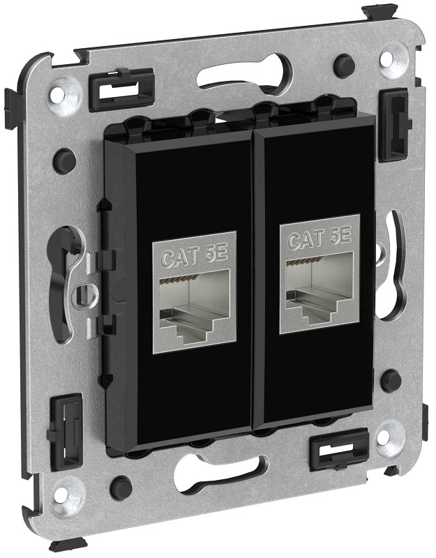 Розетка компьютерная экранированная без рамки DKC Avanti 2-м. RJ45+RJ45 5е черный квадрат картинка