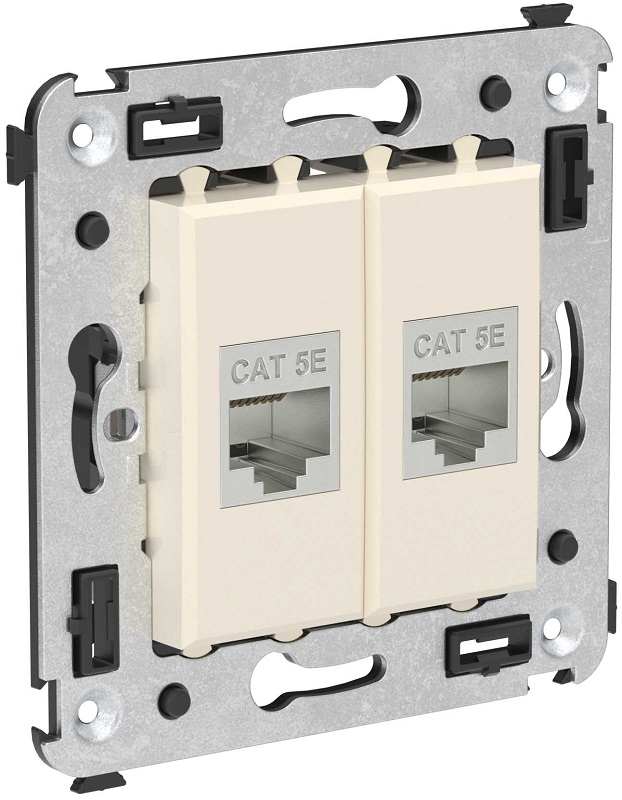 Компьютерная розетка двойная экранированная без шторки используется для подключения компьютерной техники и соединения с патч-панелью. Компьютерная розетка предназначена для скрытого монтажа в стену, поставляется в комплекте с суппортом. Розетка RJ-45 категории 5e – это наиболее популярная на сегодняшний день модель. Она позволяет организовать сеть с частотой 125 МГц и скоростью до 1000 Мбит/с. Материал – металл, термопласт.
