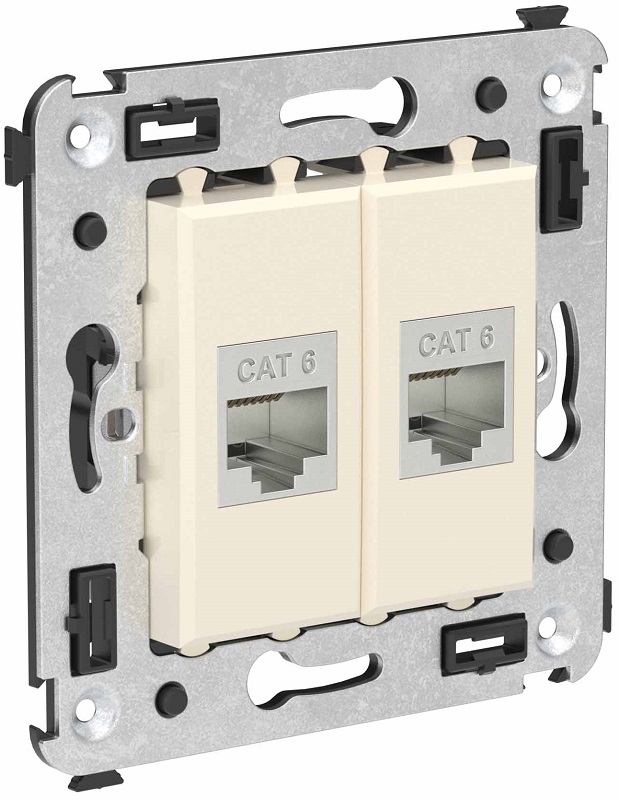 Компьютерная розетка двойная экранированная используется для подключения компьютерной техники и соединения с патч-панелью, предназначена для скрытого монтажа в стену, поставляется в комплекте с суппортом. Розетка RJ-45 категории 6 может использоваться для организации сетей с частотой до 250 МГц и передавать данные на большие расстояния. Материал розетки – металл, термопласт