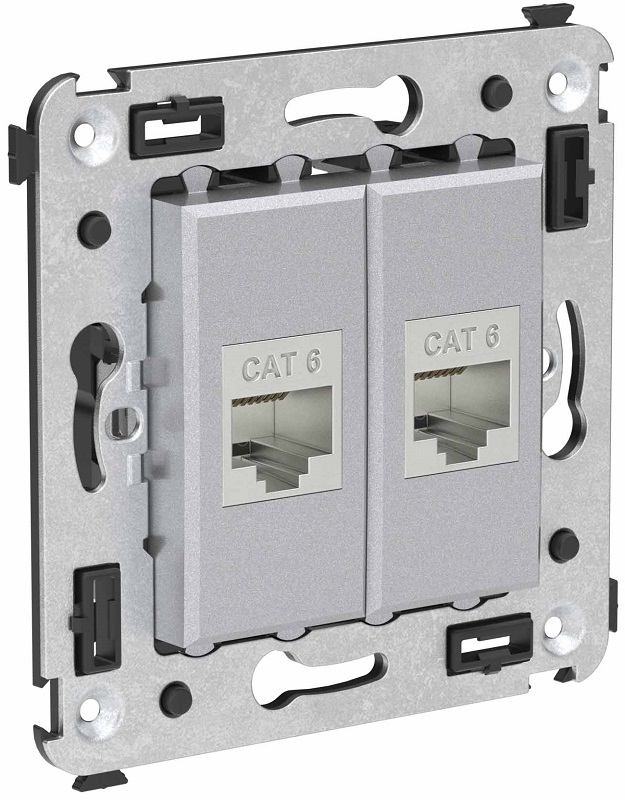 Компьютерная розетка двойная экранированная используется для подключения компьютерной техники и соединения с патч-панелью, предназначена для скрытого монтажа в стену, поставляется в комплекте с суппортом. Розетка RJ-45 категории 6 может использоваться для организации сетей с частотой до 250 МГц и передавать данные на большие расстояния. Материал розетки – металл, термопласт