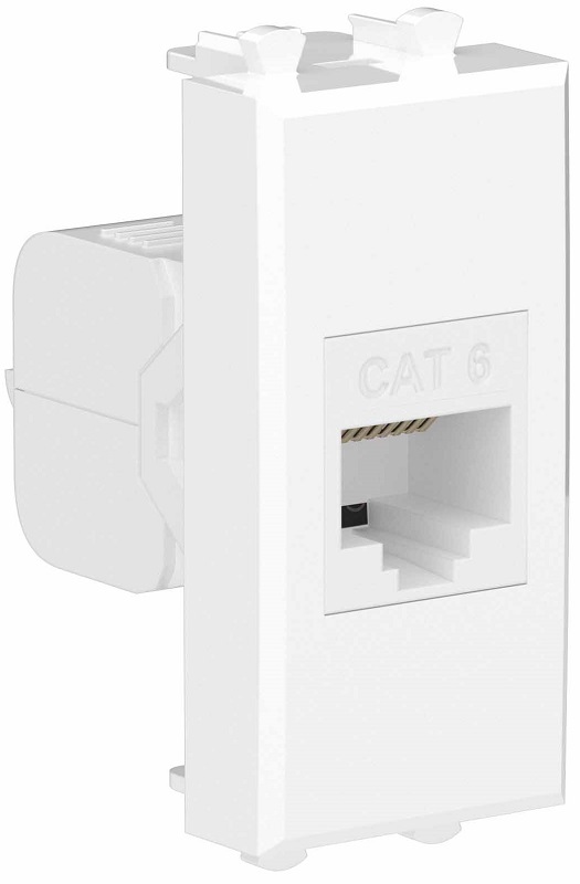 Компьютерная розетка используется для подключения компьютерной техники и соединения с патч-панелью, предназначена для комплектации систем организации рабочих мест (кабель-каналов, лючков, башенок, колонн). Розетка RJ-45 категории 6 может использоваться для организации сетей с частотой до 250 МГц и передавать данные на большие расстояния. Материал розетки – металл, термопласт.