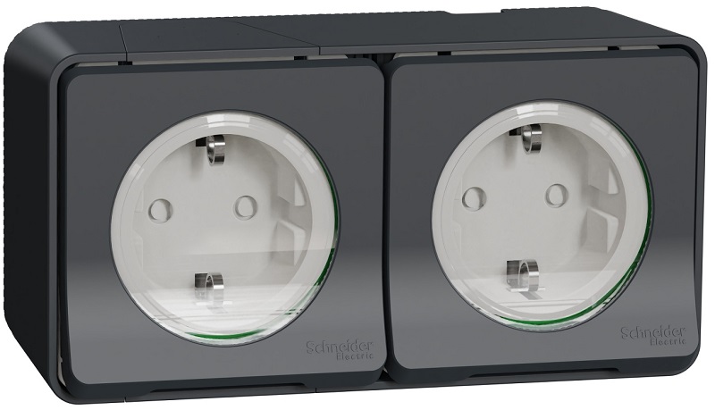 Розетка накладная с заземлением Schneider Electric Mureva Styl 2-м. крышка шторки IP55 антрацит